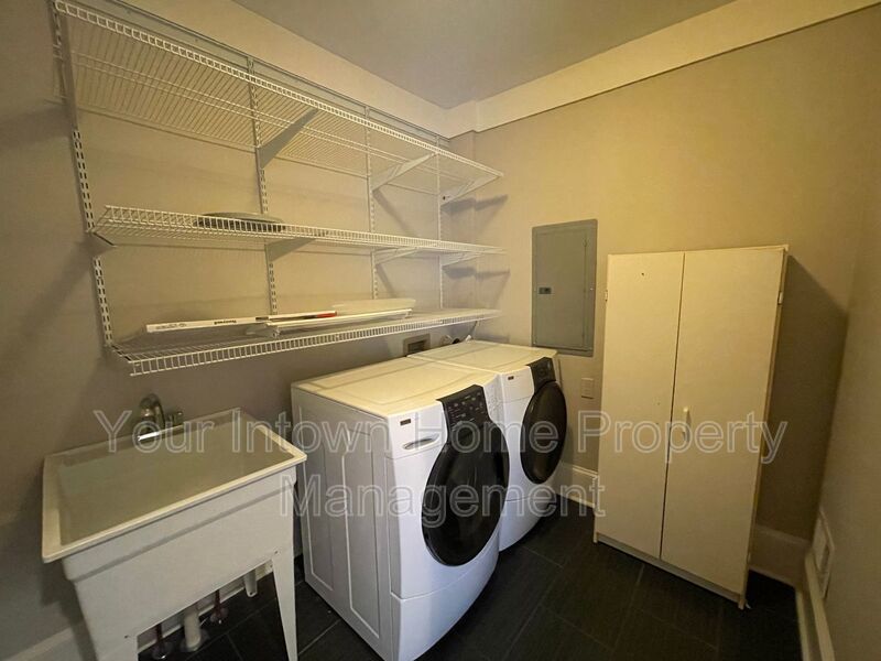 - Large laundry room with high-end washer & dryer, utility sink and storage