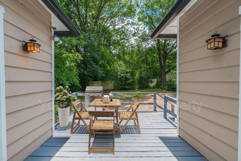This 1 BR/1 BATH UNFURNISHED unit has hardwood floors throughout, decorative fireplace in the living room, and a huge picture window overlooking backyard. Generous front porch with swing overlooks the quiet tree-lined street and in back a deck and huge yard provide additional outdoor spaces for entertaining. Walking distance to East Atlanta Village for restaurants, shops, and festivals. Quiet street amid the hustle and bustle.