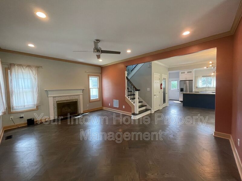 - Large living/dining area with fireplace