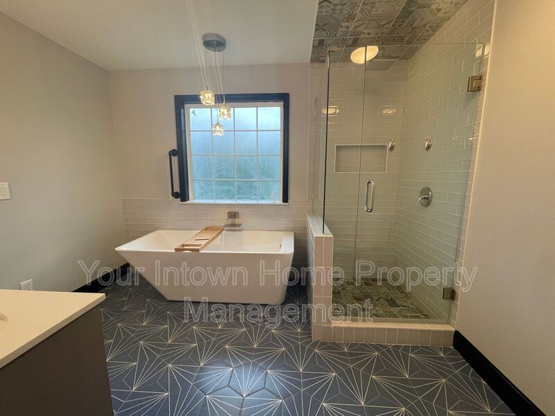 - Primary bathroom has rainfall showerhead, soaking tub and double vanity