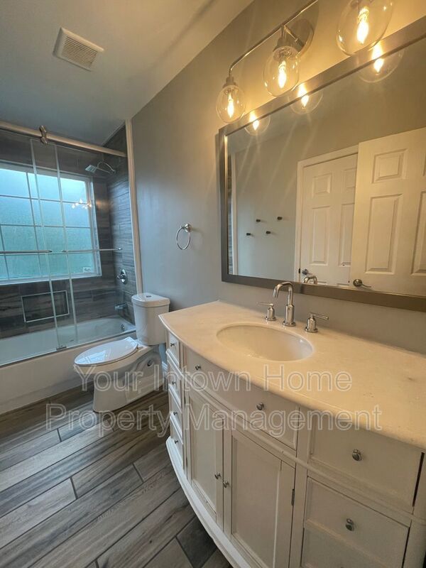 - Hall bath has tub/shower combo with rainfall showerhead