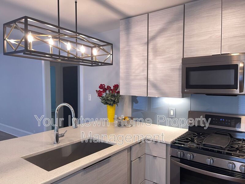 - Kitchen has quartz countertops, high-end appliances, under-cabinet lighting