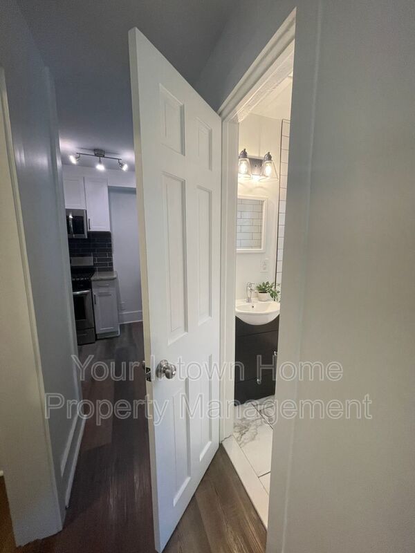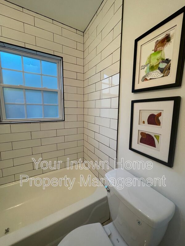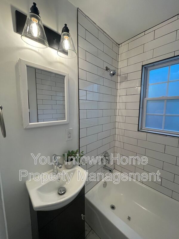 - Bathroom has subway tile and tub/shower combo