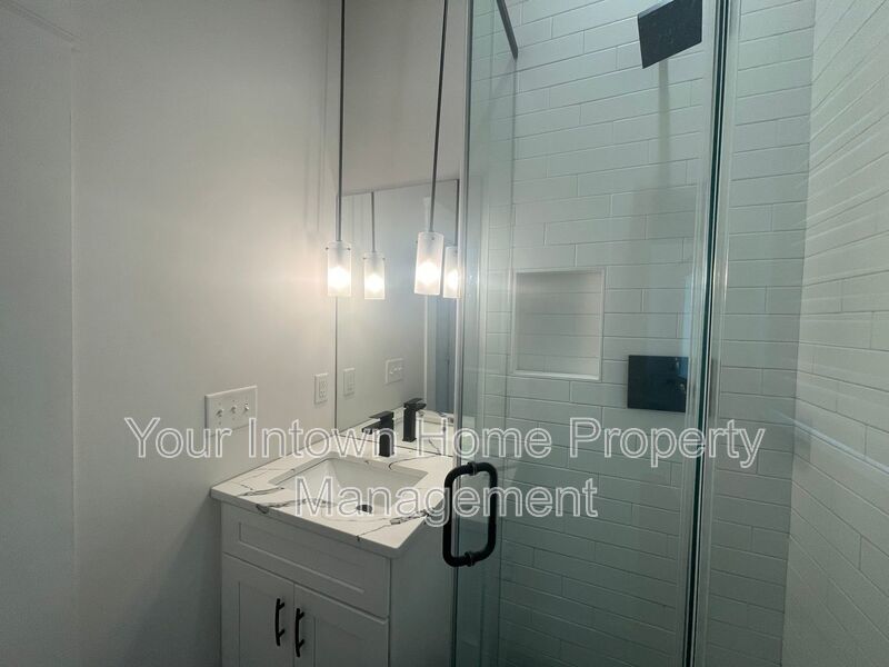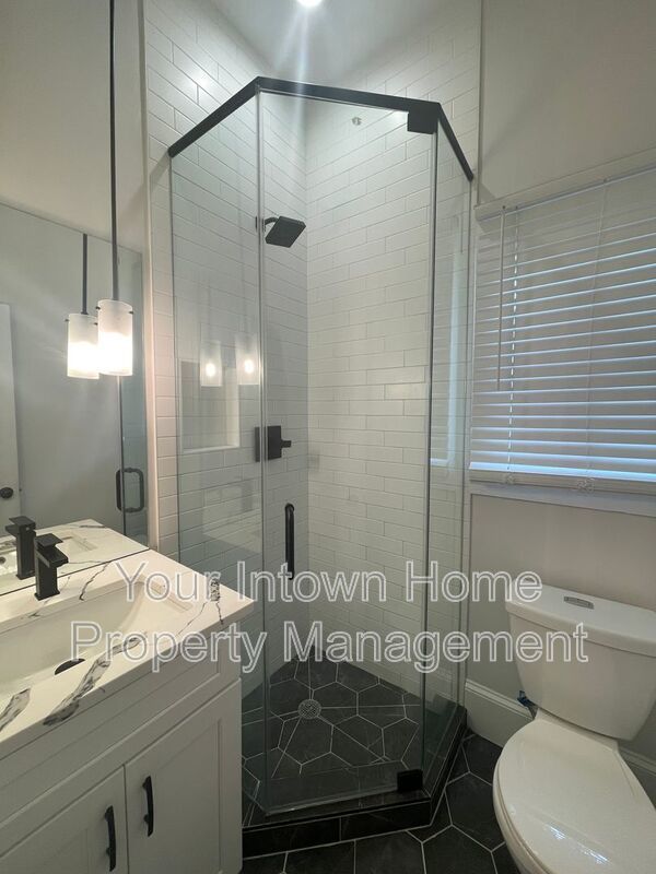 - Primary bathroom has glass shower, quartz vanity